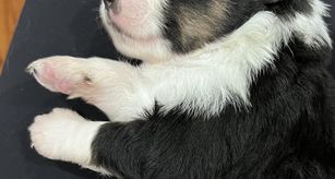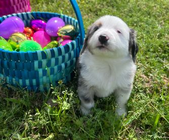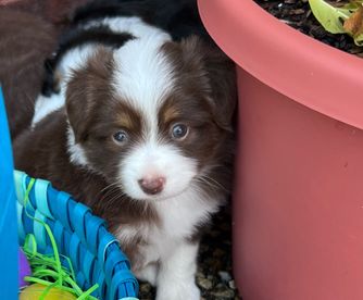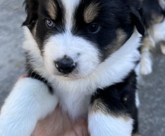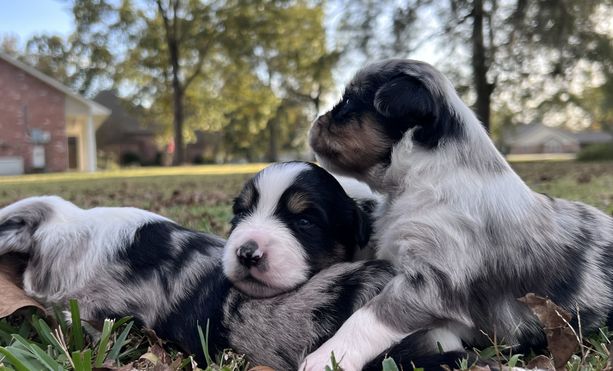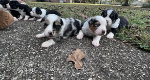Our puppies include blue merle, black tri, and red tri. Colors will vary depending on the parent dogs.