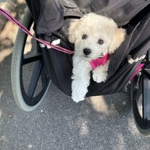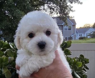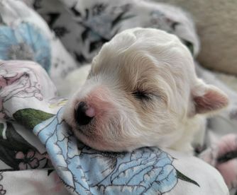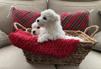 A wonderful experience from start to finish! We had lost our nearly 14 year-old Bichon several months earlier due to advanced dementia and other ailments. Nataliya responded to my initial email almost immediately. We set up a video chat and had the opportunity to “meet” the pup who would become our Daizy when she was only a few weeks old. Nataliya answered all our questions and followed up with additional information about the pup’s parents. We placed a deposit on her, knowing that it would be at least six weeks before she could come to her forever home. Nataliya promised to stay in touch and send pictures, something that was particularly important to our daughter who has severe disabilities. True to her word the updates and pictures were frequent. We picked up Daizy about 3 1/2 weeks ago. She has been an absolute joy. She came to us almost fully “paper” trained and has had very few accidents since — exceeding our expectations. She is a great eater and we have continued to feed her the food that Nataliya recommended and sent her home with. She has bonded with our daughter and loves to go for rides in her wheelchair bag. She is quite energetic during the day and has slept through the night from the time we got her home. She was examined by our vet shortly after we picked her up and got a clean bill of health. I can’t say enough good things about our experience and highly recommend Michael and Nataliya.