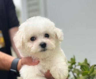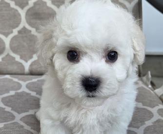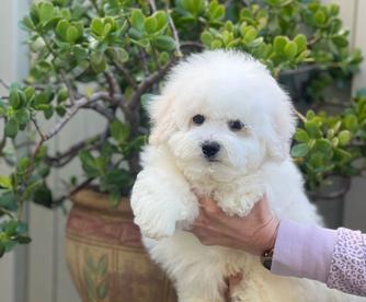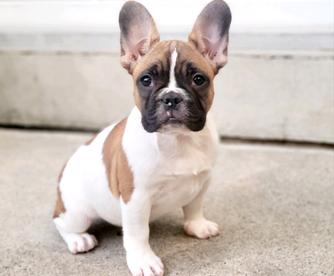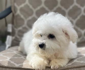 Our Bichon Frise puppies are white. French Bulldog puppies include fawn and black and tan. Colors will vary depending on the parent dogs.