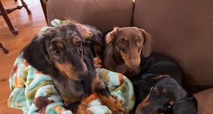 Our dogs are our passion, and we enjoy spreading the love of Dachshunds with other individuals and families by responsibly breeding our incredible dogs. We breed with a focus on health and pedigree, in order to produce the best quality dogs that we can. Nia Dawn Black & Tan Female, Hattie Gay Chocolate & Tan Female & Sir H. Pierot at Stud Black & Tan Dapple.