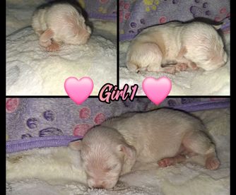 Apri first shots, dewormers, paperwork. All puppy deposits are the same no matter color or size.”
