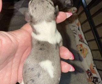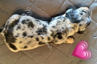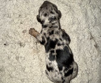 Elsa is a sweet pup! She’s a piebald dapple with amazing colors. She is super snuggly and can out run all her siblings.