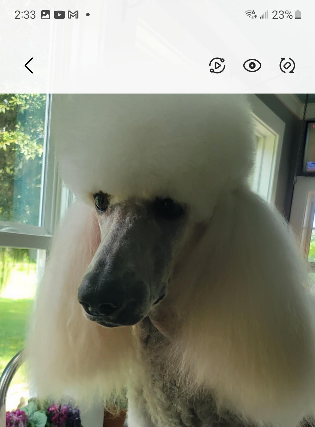 Tucker is a male Poodle. Carefully selected as a great representative of his breed, Muriel decided to make him part of their program. Muriel has passed Good Dog’s screening process, which involved a review of their breeding practices, environment, and the mental and physical health of their dogs.