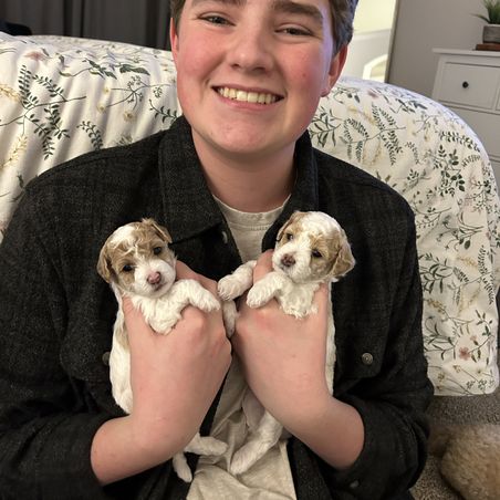 We are a small breeder, we only have one litter per year. Our family raises the puppies together in our home and loved every minute we have them! They are not a number to us. Each little fur baby is carefully placed into homes that will be a great fit for both the family and puppy.