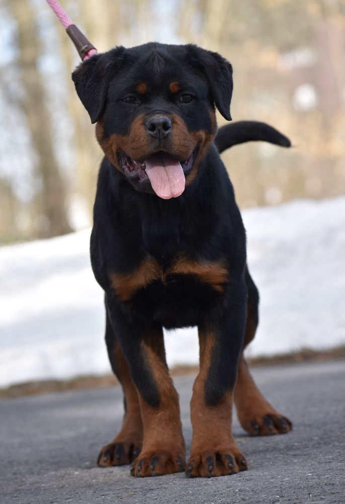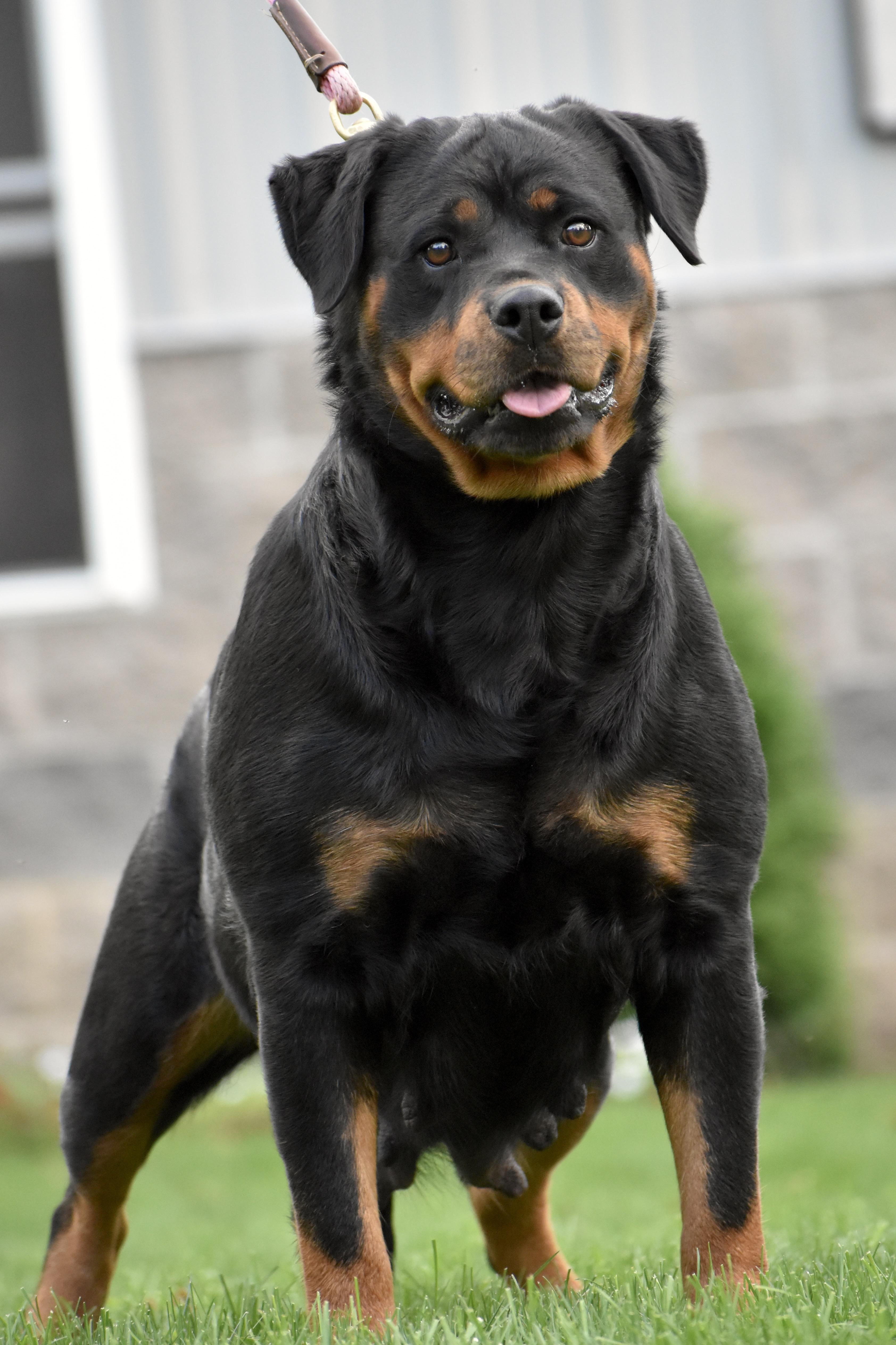 I am devoted to ensuring there are happy and healthy Rottweilers for others to enjoy, and I do so by responsibly growing this incredible breed. I do not produce a litter unless each of my parent dogs are fully healthy and excellent representations of the standard. I am dedicated to always having responsible policies when it comes to breeding, training, and rehoming my pups. I love what I do and truly want nothing more than to see each and every one of my puppies shine!