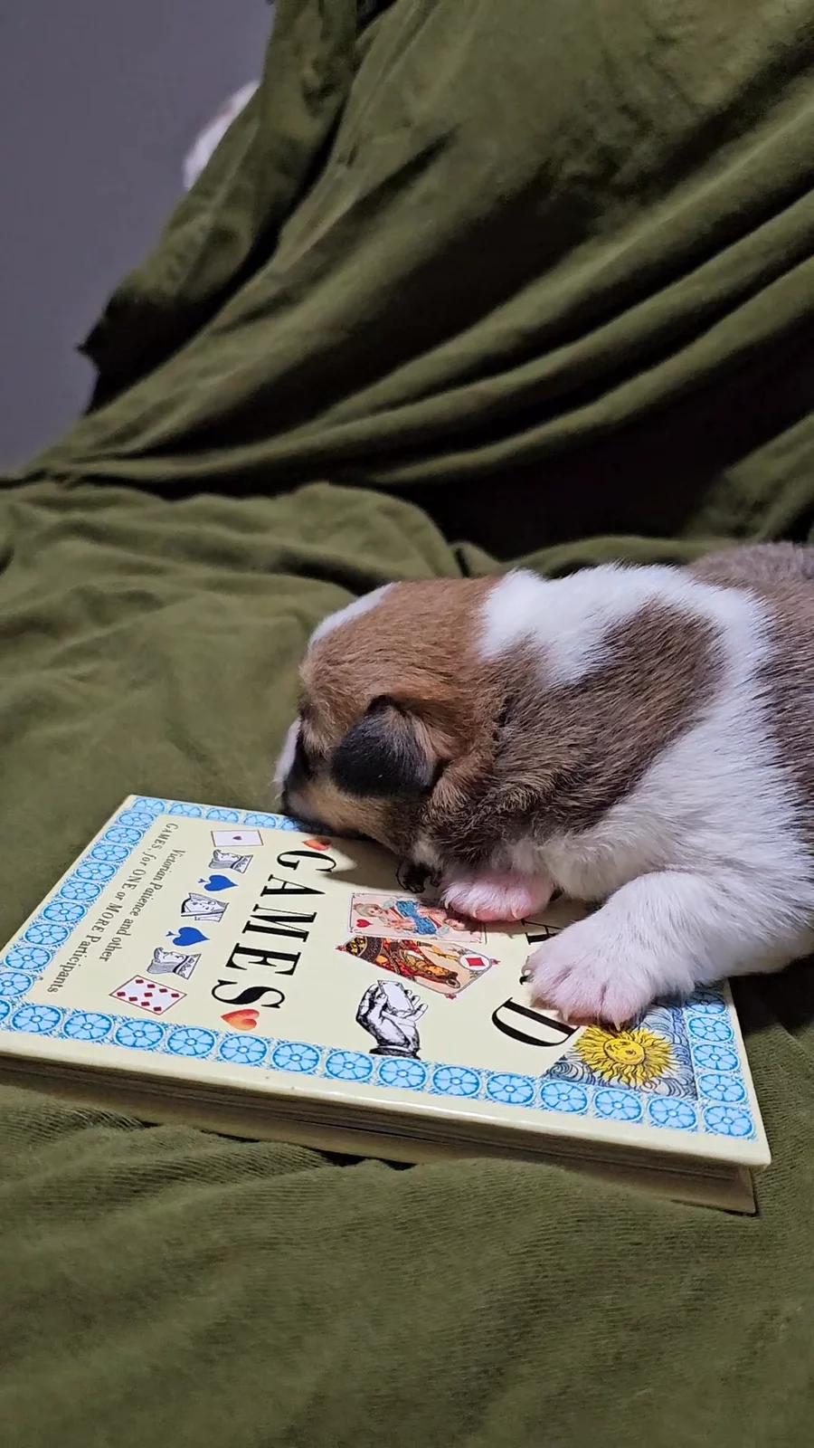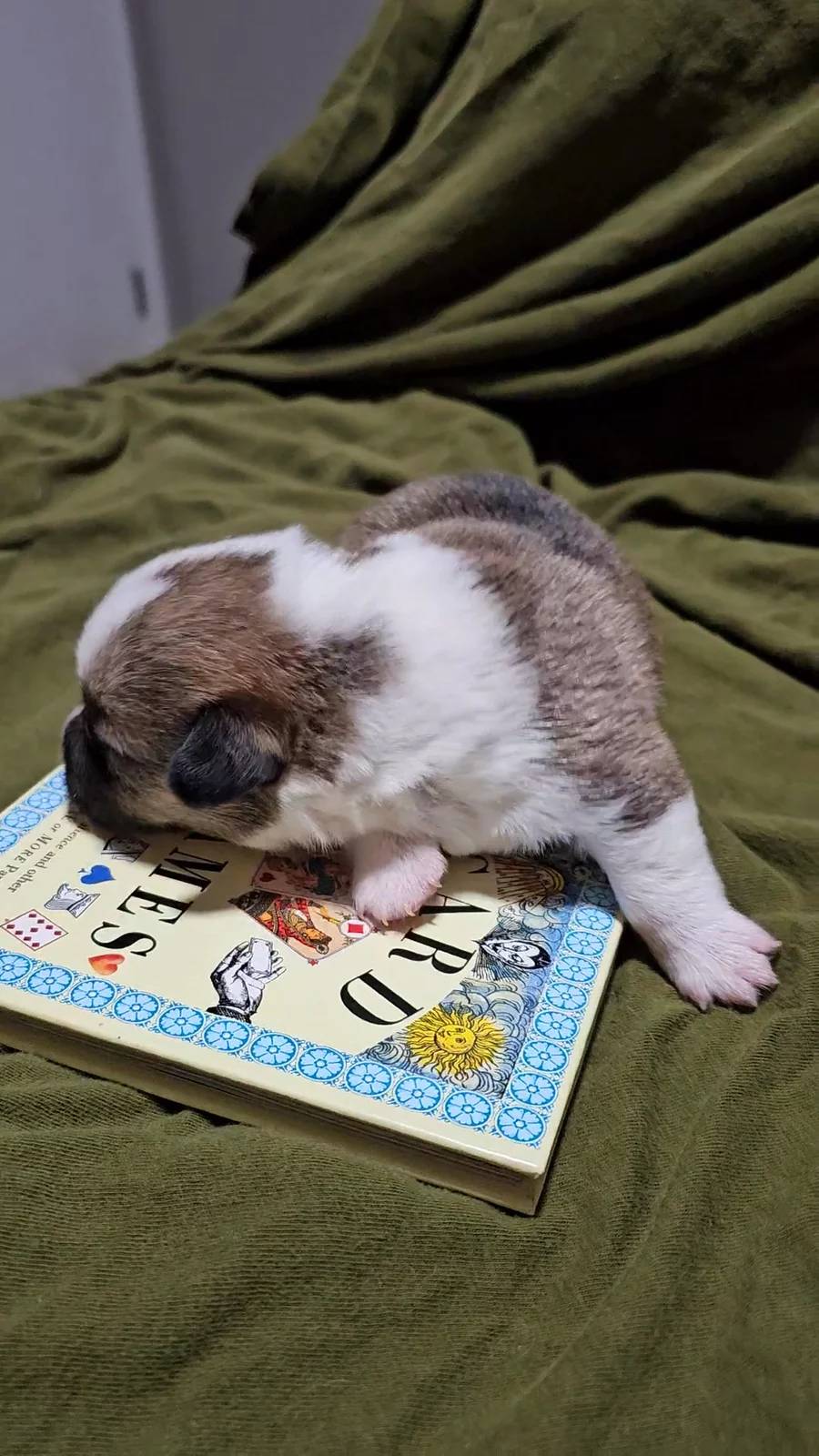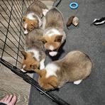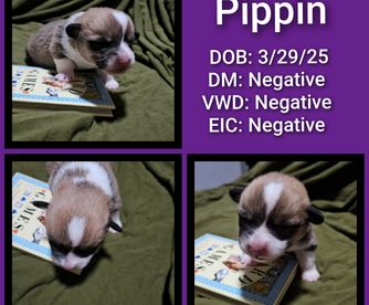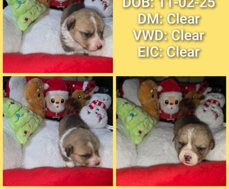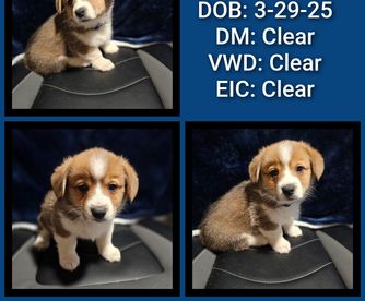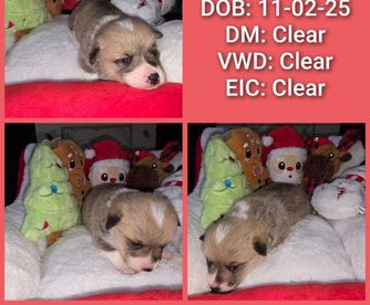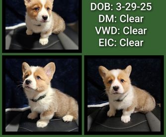 Our Saint Bernard puppies include red and white, mahogany and white, and brown and white. Pembroke Welsh Corgi puppies include red and sable. Colors will vary depending on the parent dogs.