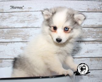 We are one of the first 10 breeders of Pomskies in the World. Back in 2013 when we began there were only a handful of us. One of the breeders that we were close to at the time reached out to us and invited us to learn more about the process of breeding Pomskies. We fell in love immediately with the Pomsky breed as well as enjoyed having puppies to cuddle.