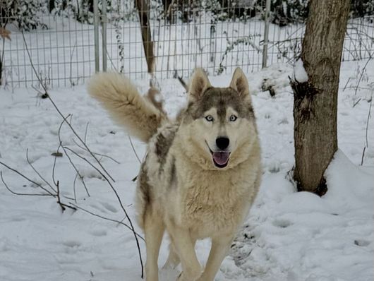 Storm is a female Siberian Husky. Carefully selected as a great representative of her breed, Mike decided to make her part of their program. Mike has passed Good Dog’s screening process, which involved a review of their breeding practices, environment, and the mental and physical health of their dogs.