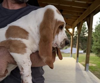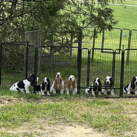 I hold a Bachelor of Science Degree majoring in Animal Science and my husband is a BWFA certified Farrier specializing in corrective shoeing. He owned a Bassett Hound as a child and has always wanted to reconnect with them so here we are! Our dogs are a part of our family, and it is an honor to work with this breed. We are hound enthusiasts, and this breed is so loyal, comical and stubborn but the most loving creatures. I mean who isn't happy around a Bassett Hound!