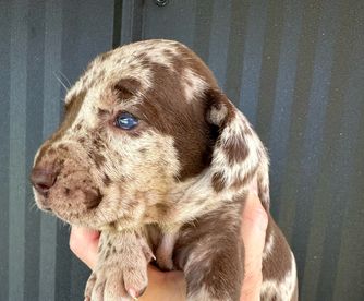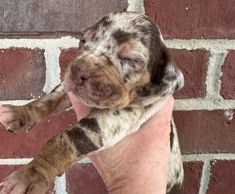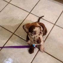 Mona with Middle Tn Leopard Catahoulas was absolutely wonderful. My wife and I were not very knowledgeable about the breed. She took time to educate us on the breed and on our desires for a new puppy. The whole process from start to finish was so easy and arrangements were made for our puppy to be delivered to us via private transport. After all the arrangements were made, I actually developed some reservations, and Mona was so kind and gentle to talk me through them. She told me she thought the puppy she was sending us would be perfect for our needs and she was absolutely right. My wife and I were so very pleased and our "Brandy" is indeed absolutely perfect for us. Her temperament and disposition is exactly as Mona said it would be. I highly recommend Mona and Middle TN Leopard Catahoulas. You will not be disappointed.