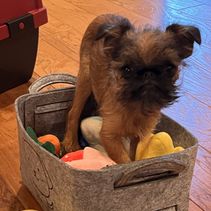 Luffy is such a joy and fits right in with us and our other Brussels. We love him and can tell he came from a loving home. Thank you Jennifer!