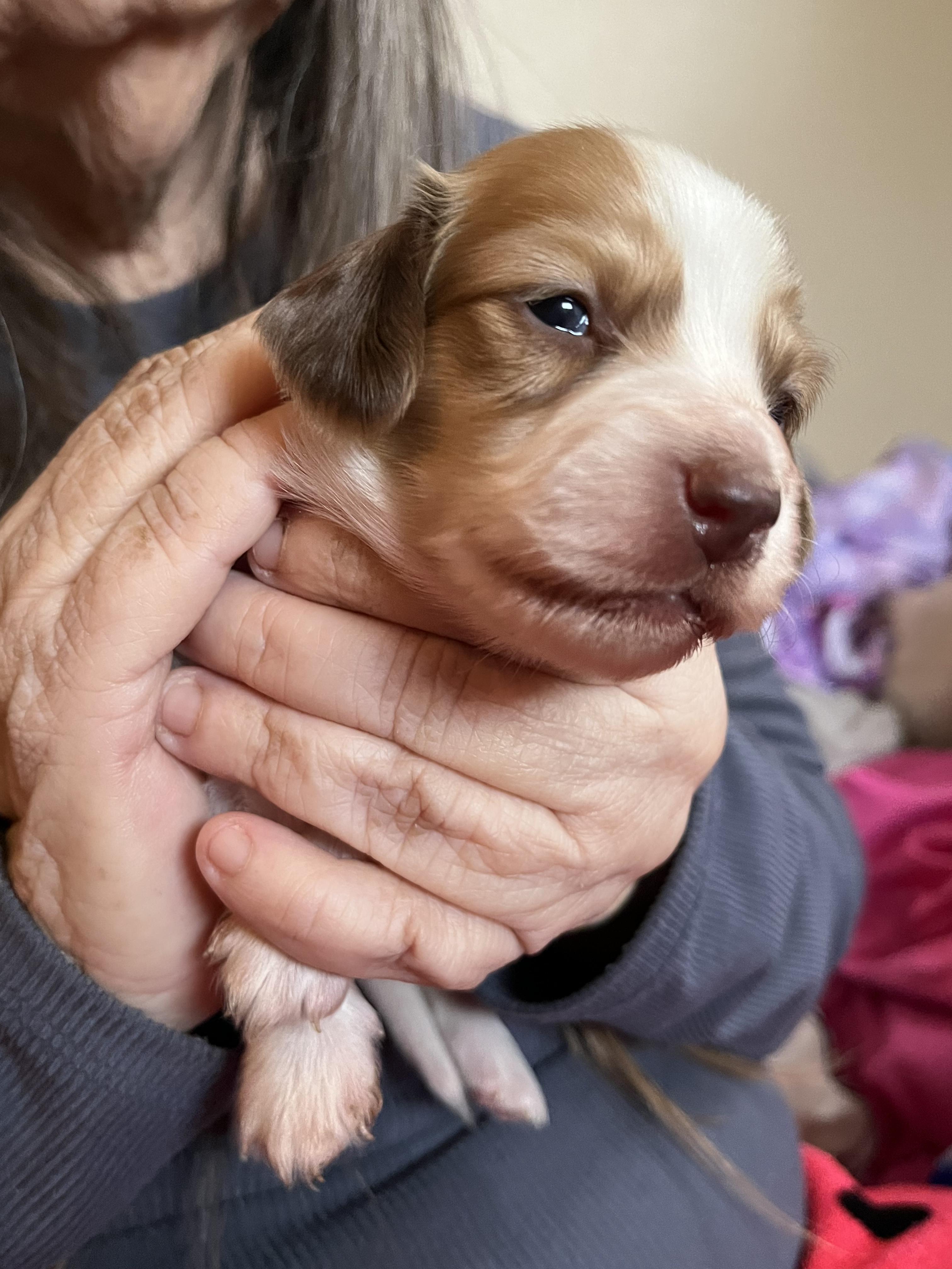 Jasmine is a female Dachshund. Carefully selected as a great representative of her breed, Amanda decided to make her part of their program. Amanda has passed Good Dog’s screening process, which involved a review of their breeding practices, environment, and the mental and physical health of their dogs.