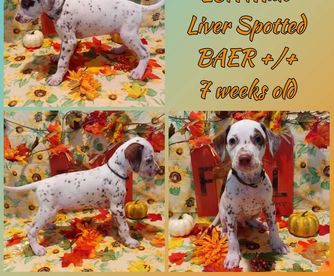 Our puppies include white and liver brown and white and black. Colors will vary depending on the parent dogs.