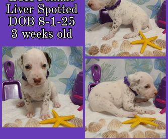 I'm Jacqie C., the breeder behind Mid-Michigan Dalmatians located in Perry, MI. I offer quality Dalmatian puppies for families who share the same love and passion that I do. My puppies come with 1st vaccines, dewormed, microchiped, vet check, BAER test, HUA/LUA tested, AKC registration. All are started with socialization and potty training with Puppy Culture before going home.
