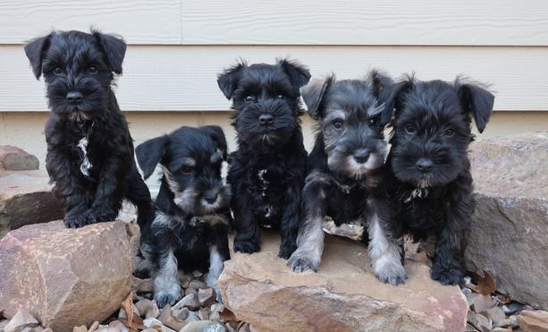 Our puppies include salt and pepper, black and silver, and black. Colors will vary depending on the parent dogs.