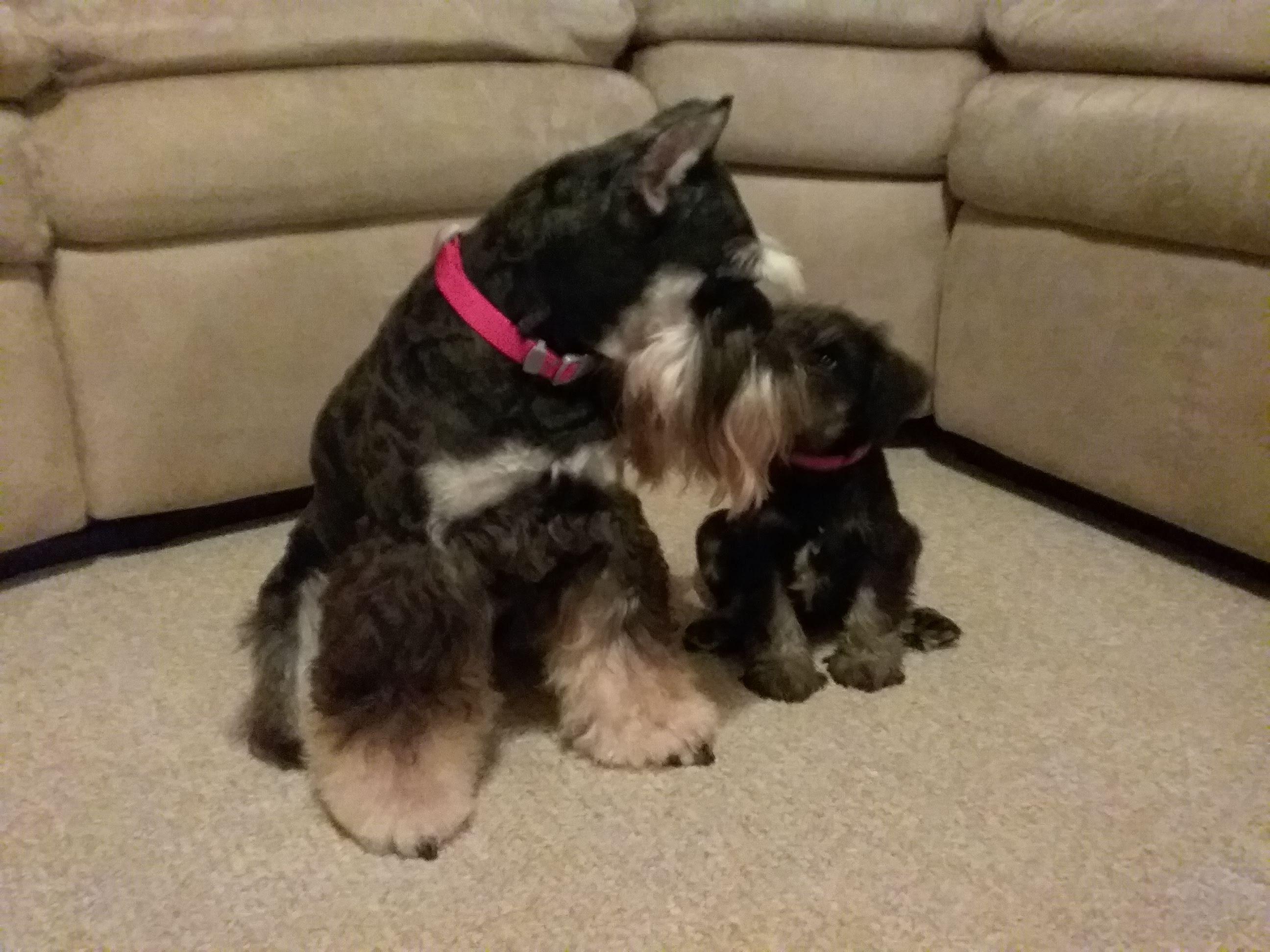 What a terrific experience working with Liza and Grace of Midnight Schnauzer! They were very informative from the time the pups were born with pictures and provided tips and videos to help us transition home. Our Tilly was very calm during our Christmas get together with family and was well loved on by all. Even the two year grandson twins learned to stand still and give Tilly a treat. Grace prepared us and the pup well! Highly recommend Midnight Schnauzer!! A great pup, breeder & trainer! Love 💕 them!