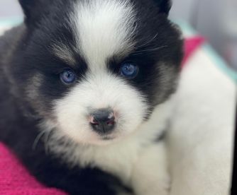 I'm Kimberlynn C., the breeder behind Midnight Sun Pomskies located in Wasilla, AK. Our dogs are bred for beauty and brains. Each one of our dogs is adored, spoiled, and fully cared for each and every day. Our goal is to produce the perfect mini husky as the perfect human and family companion. We put so much work into our puppies to give them the best head start in life.