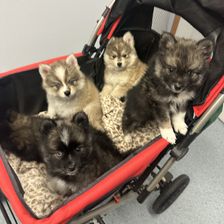 Mama Tikaani is one of THE most gorgeous pomskies out there! I am in love with her coloring, eyes.. she is stunning. She has three mini-me’s who are looking for the luckiest families to bring them home. 🥹