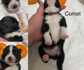 Our puppies include tri-color, gray and white, silver and white, blue, white, black and white, chocolate, merle, and red and white. Colors will vary depending on the parent dogs.