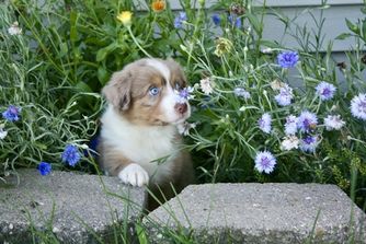 Our puppies include black, red merle, blue merle, and red. Colors will vary depending on the parent dogs.