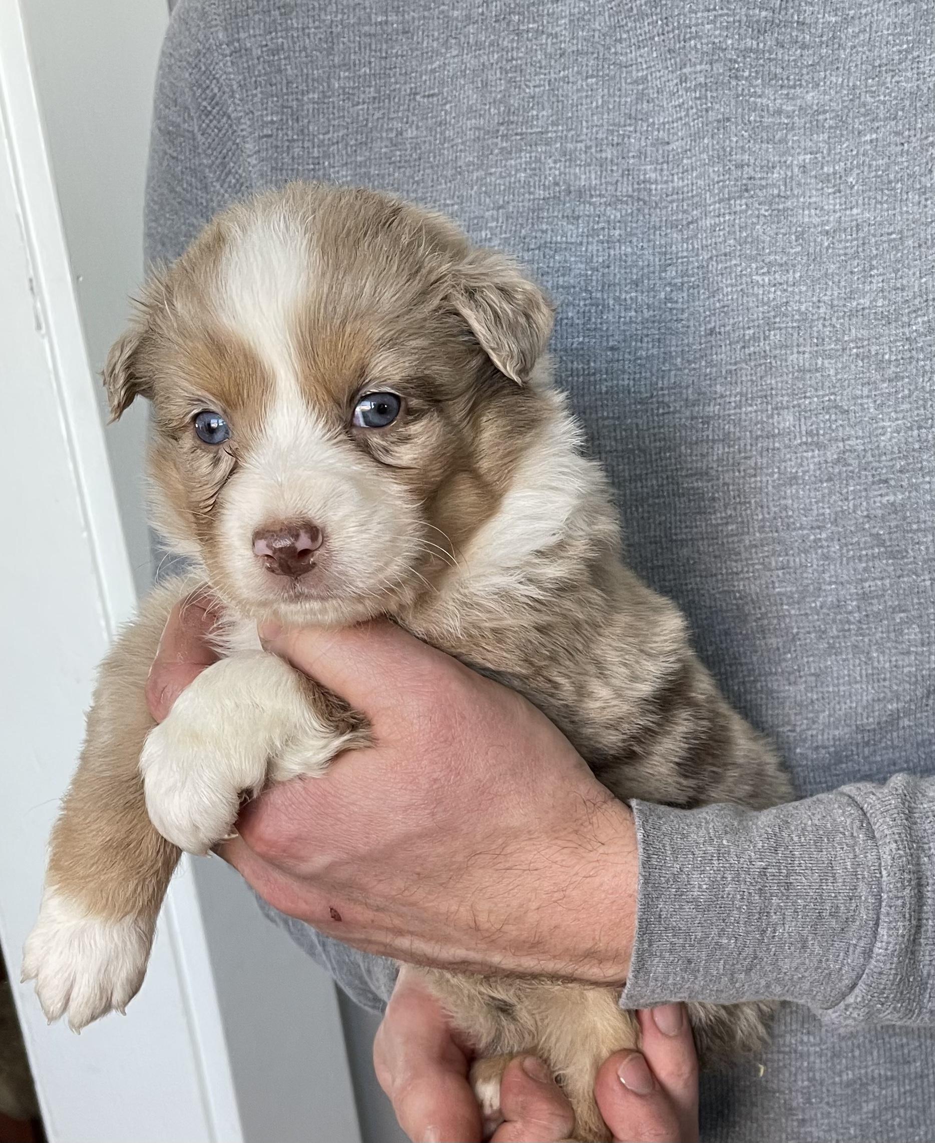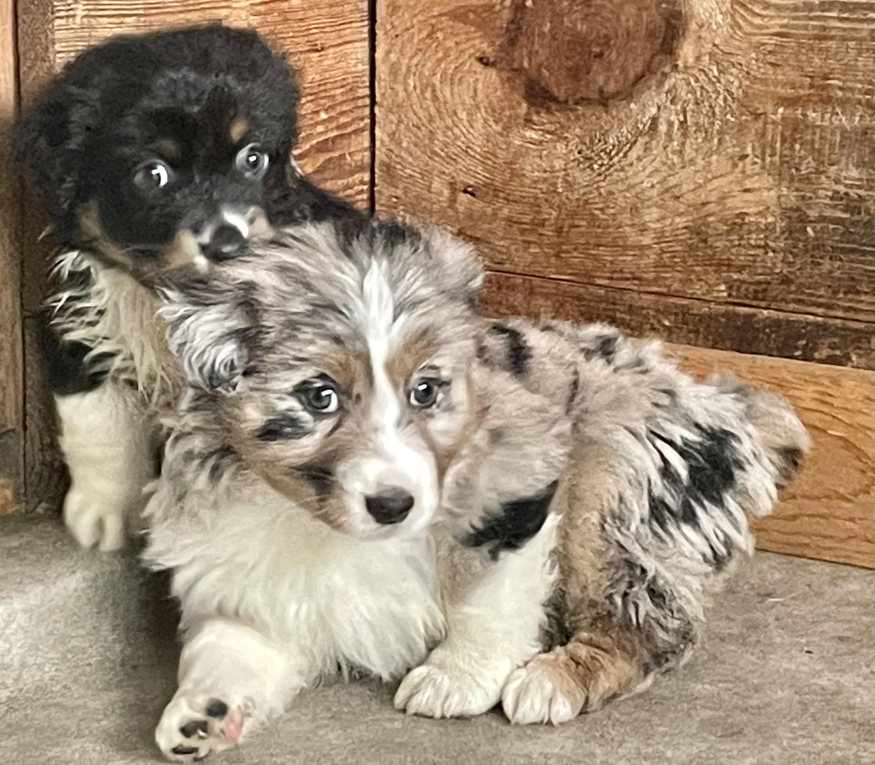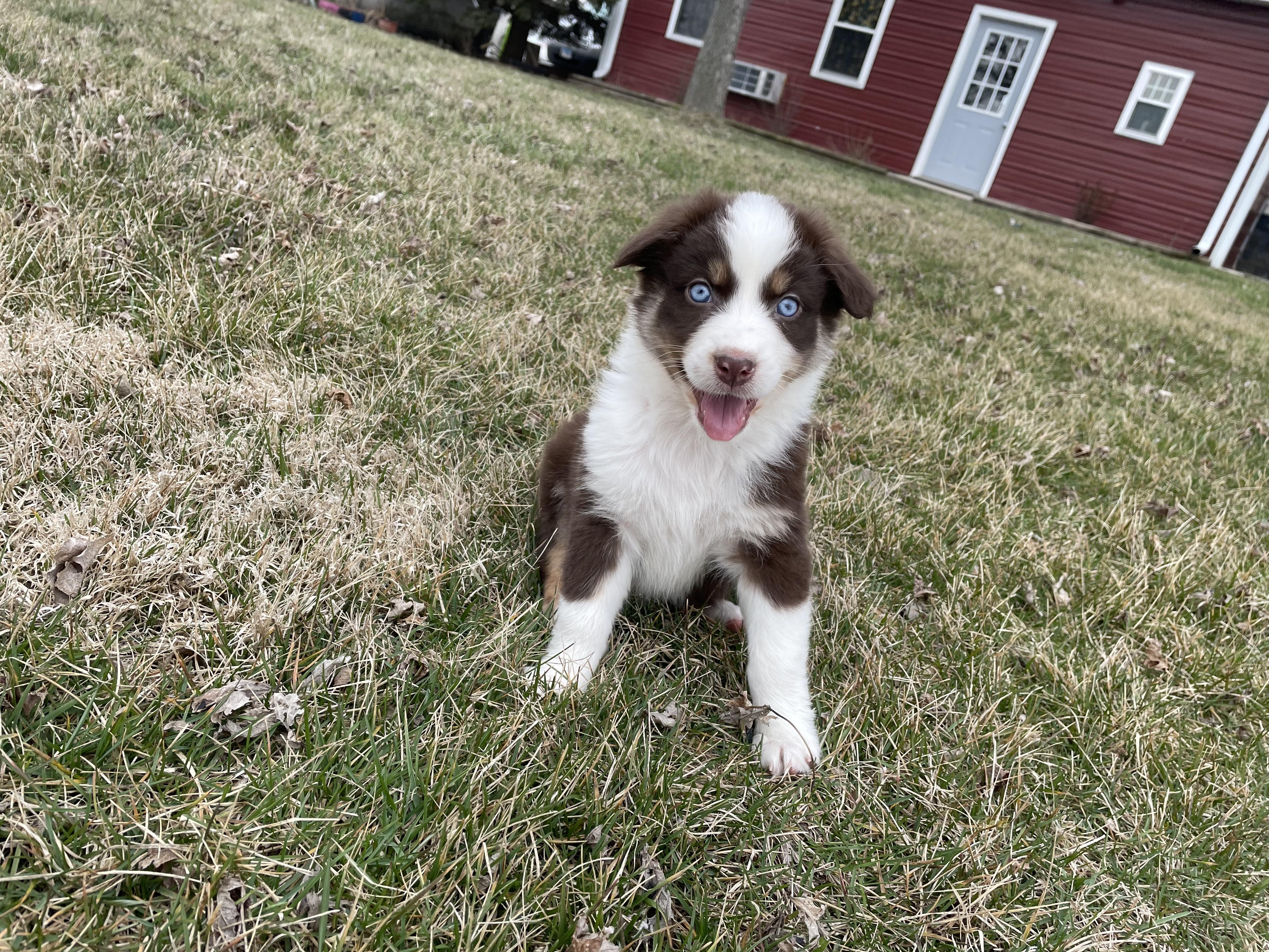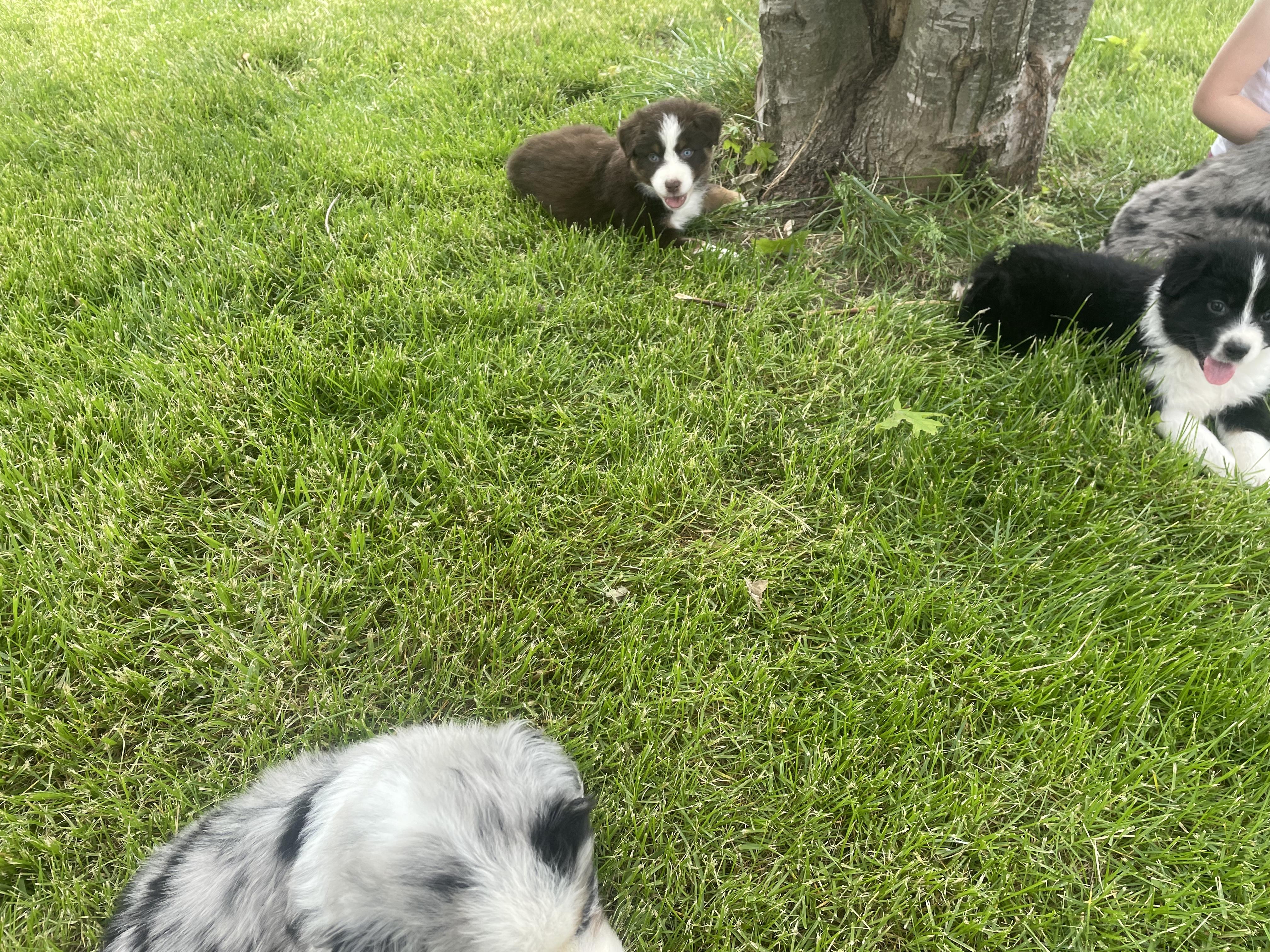 Our puppies include black, red merle, blue merle, and red. Colors will vary depending on the parent dogs.