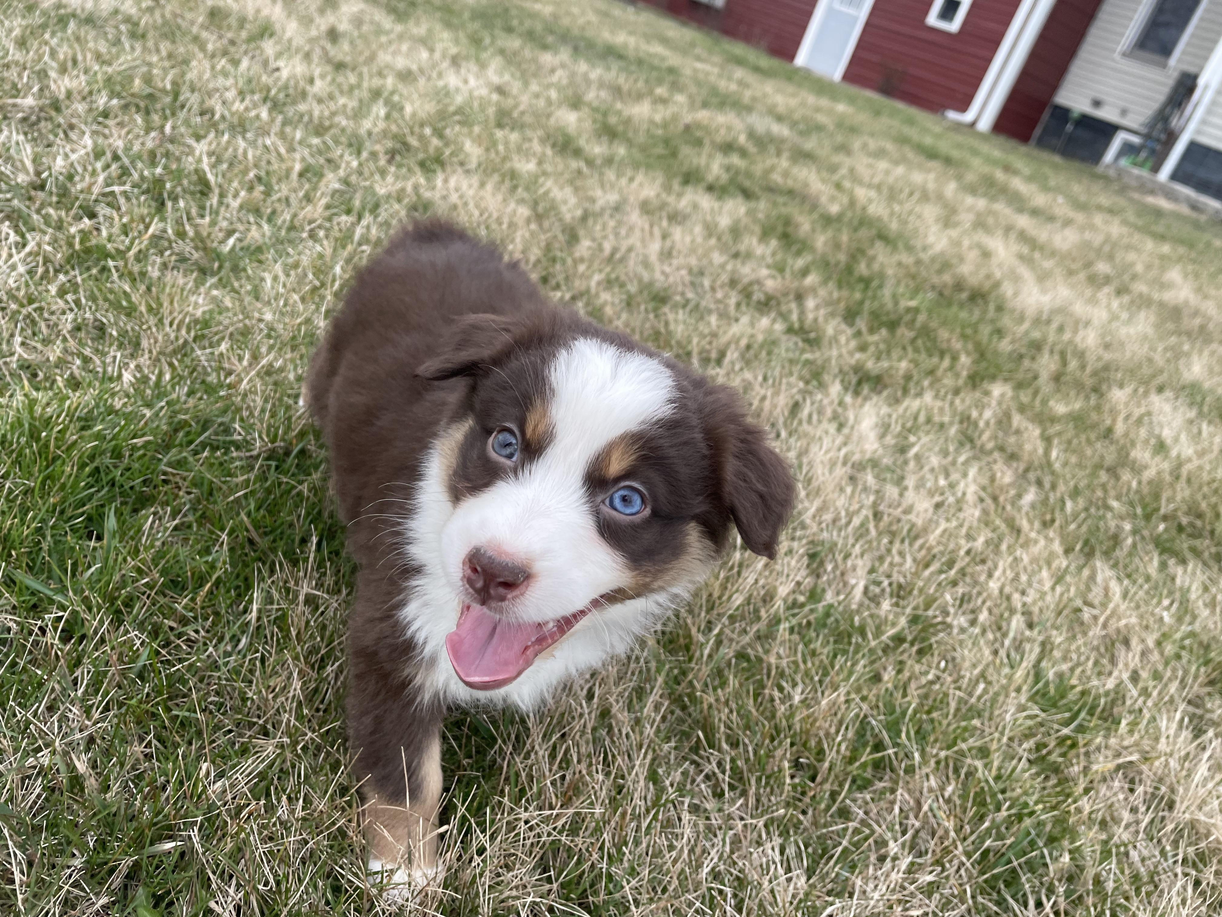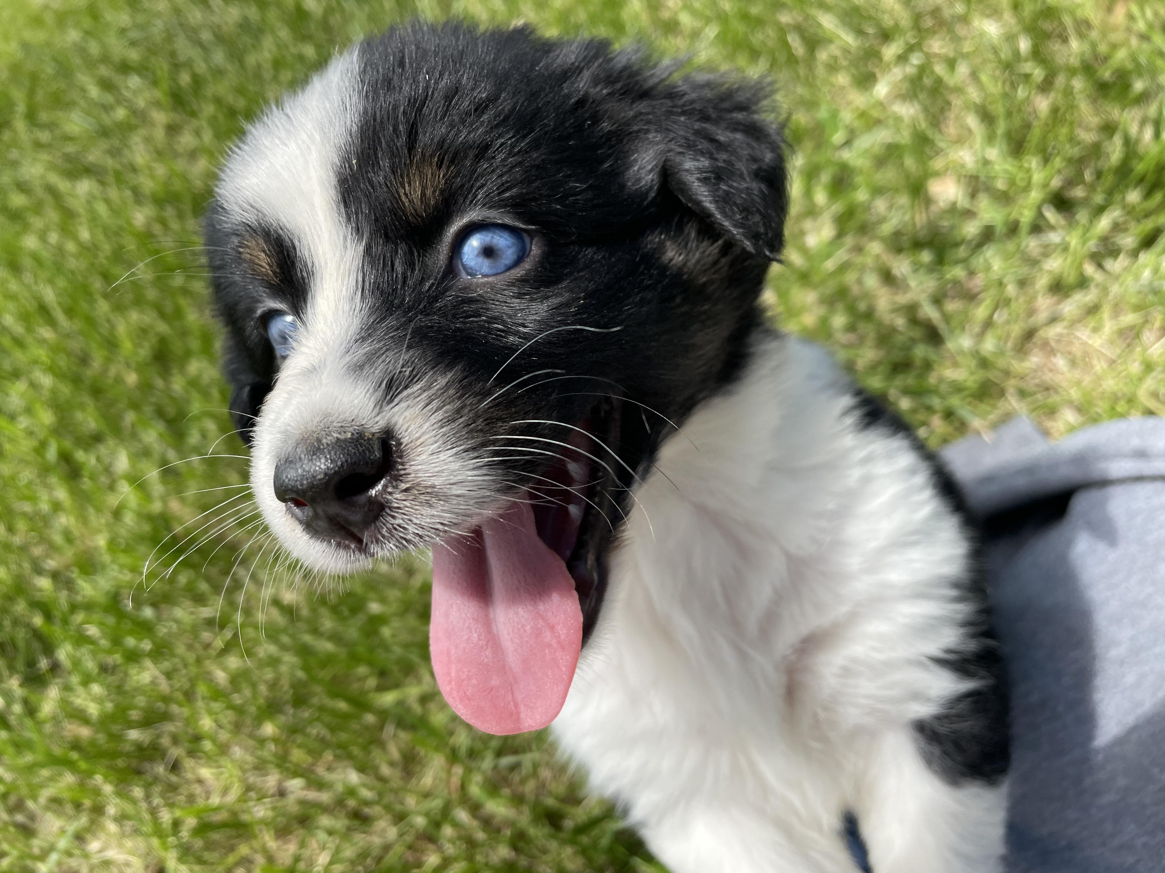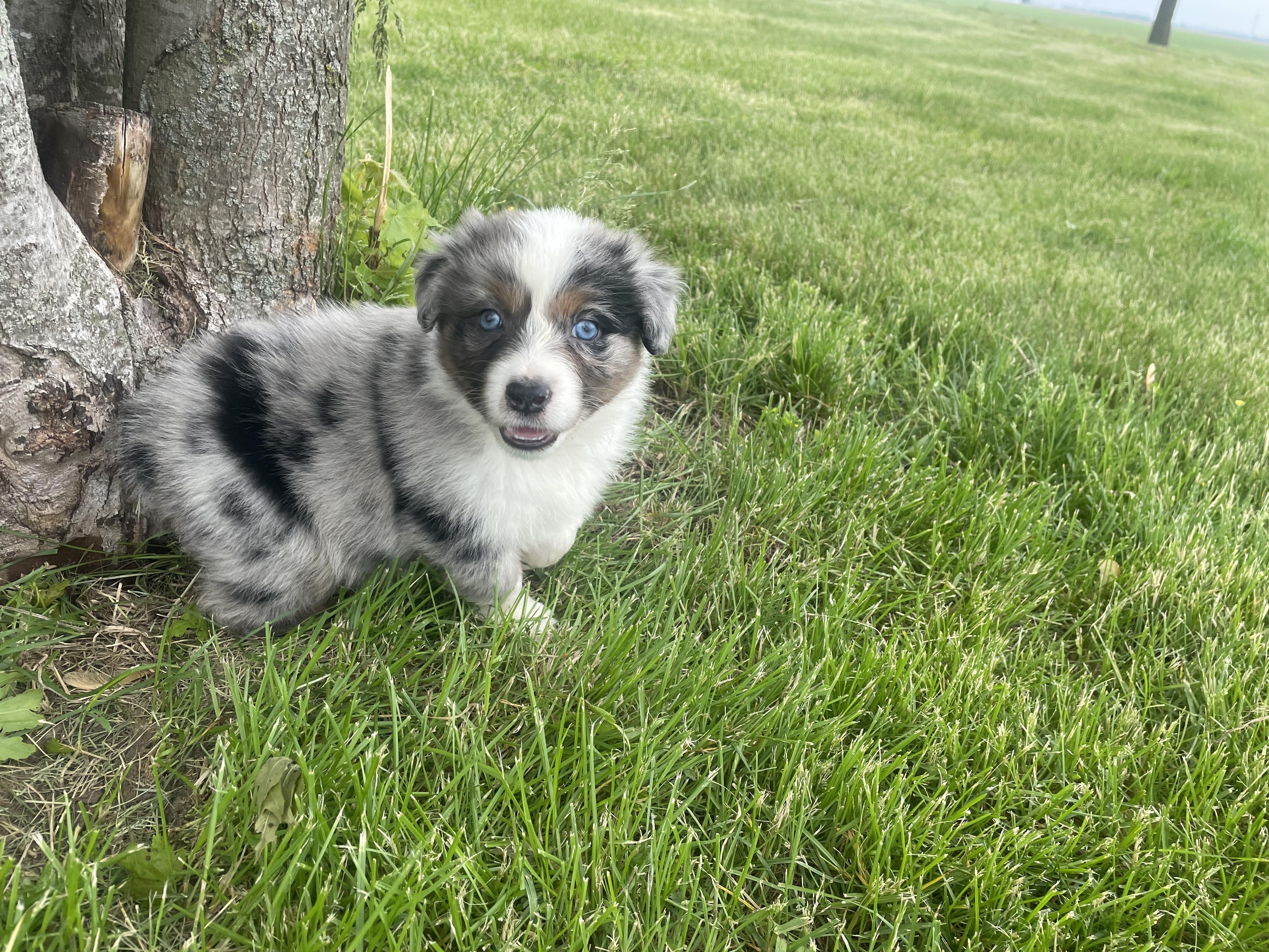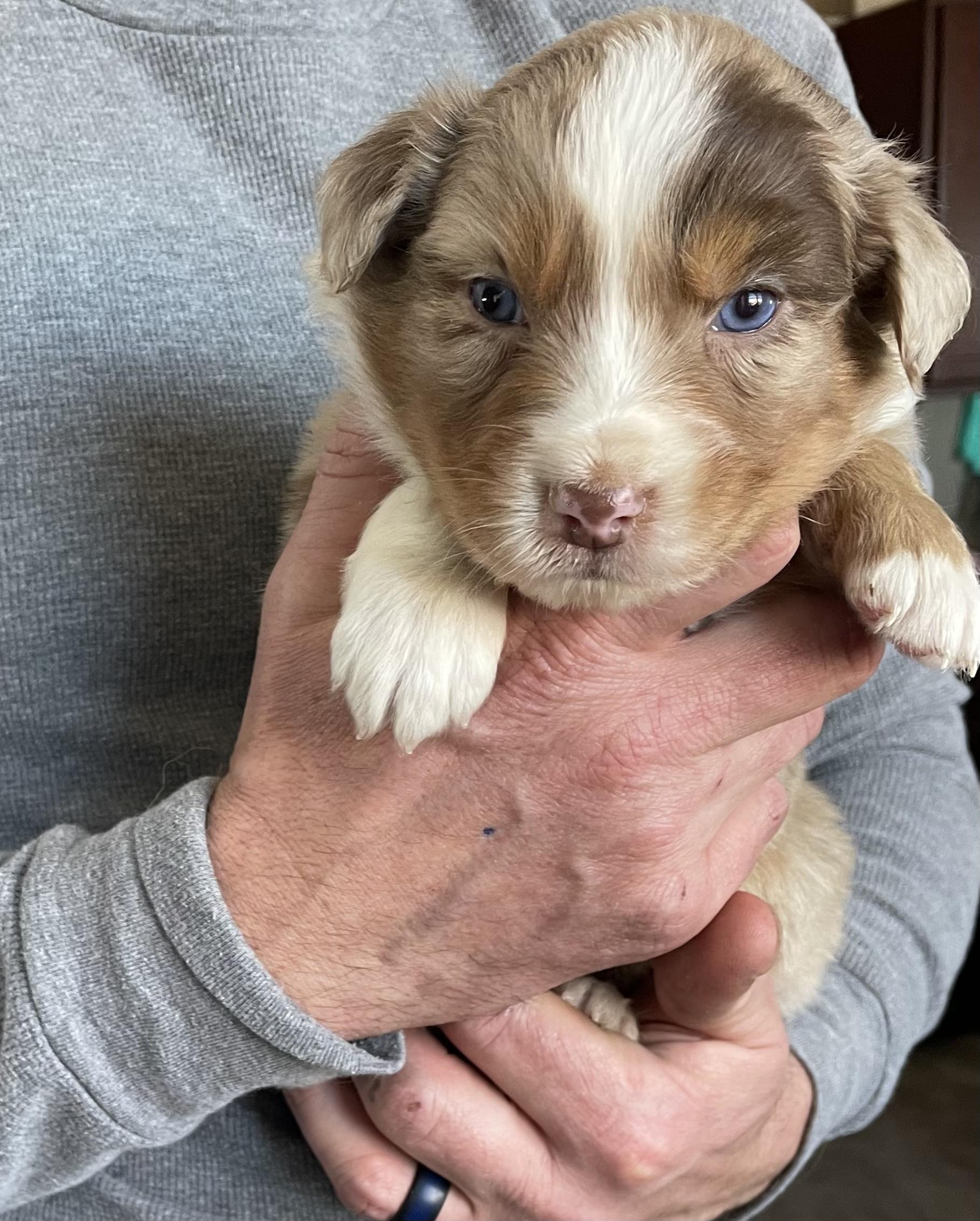 Our puppies include black, red merle, blue merle, and red. Colors will vary depending on the parent dogs.