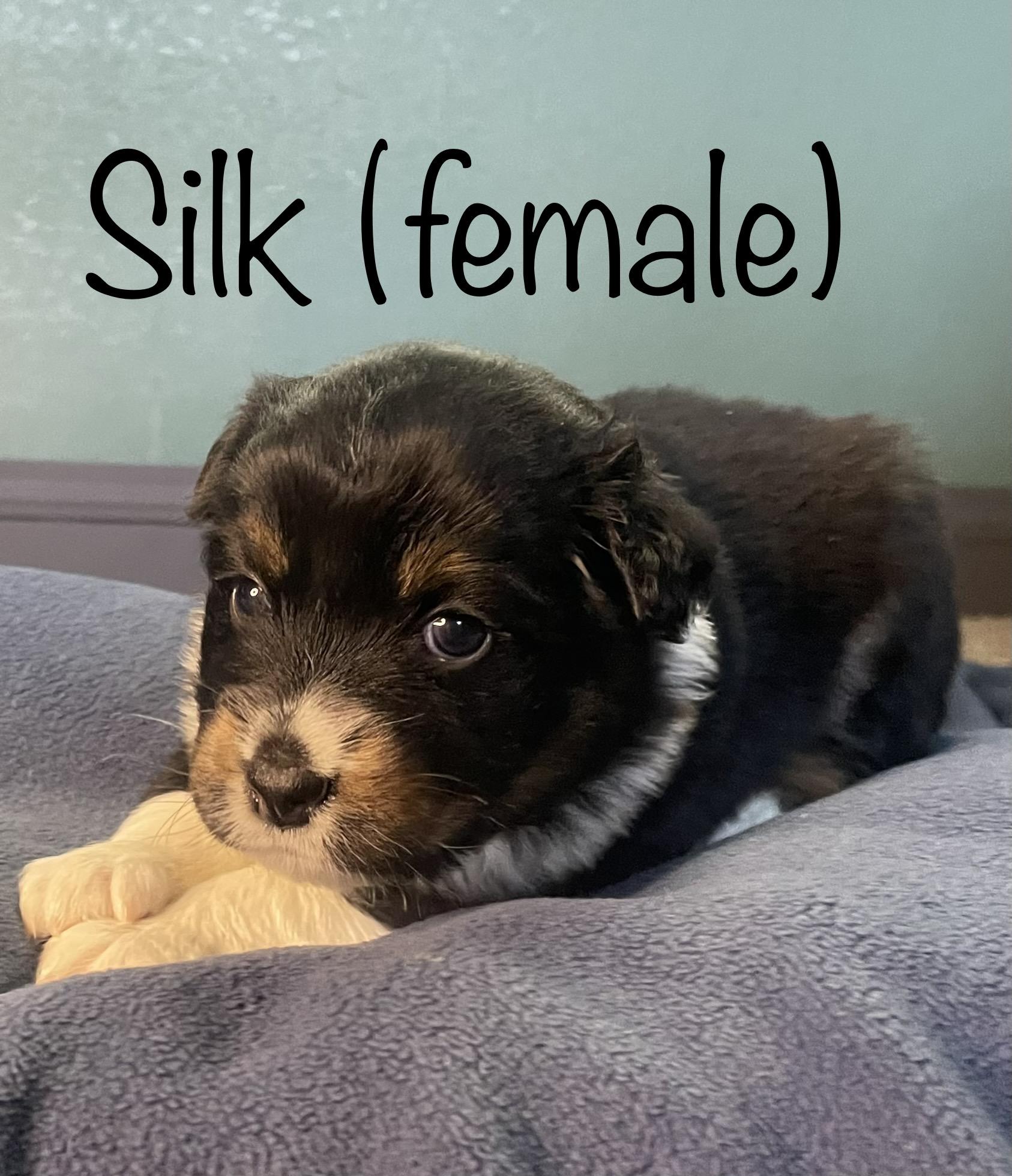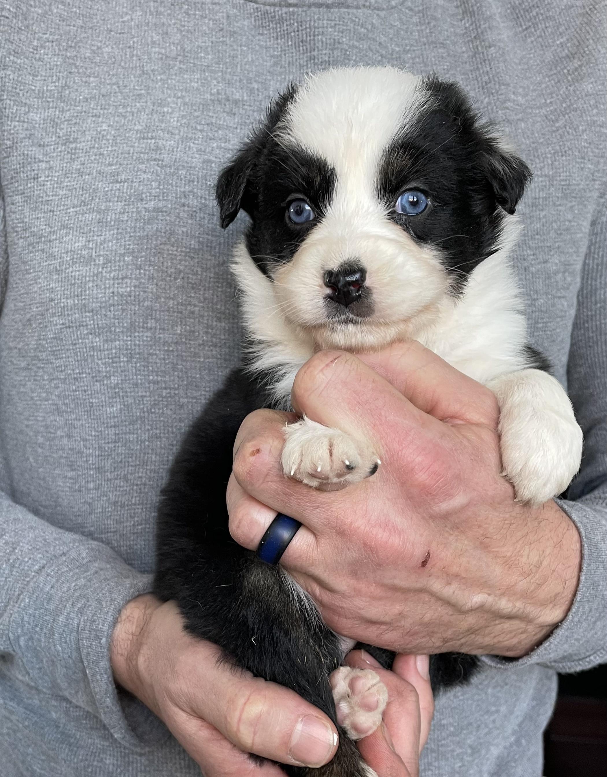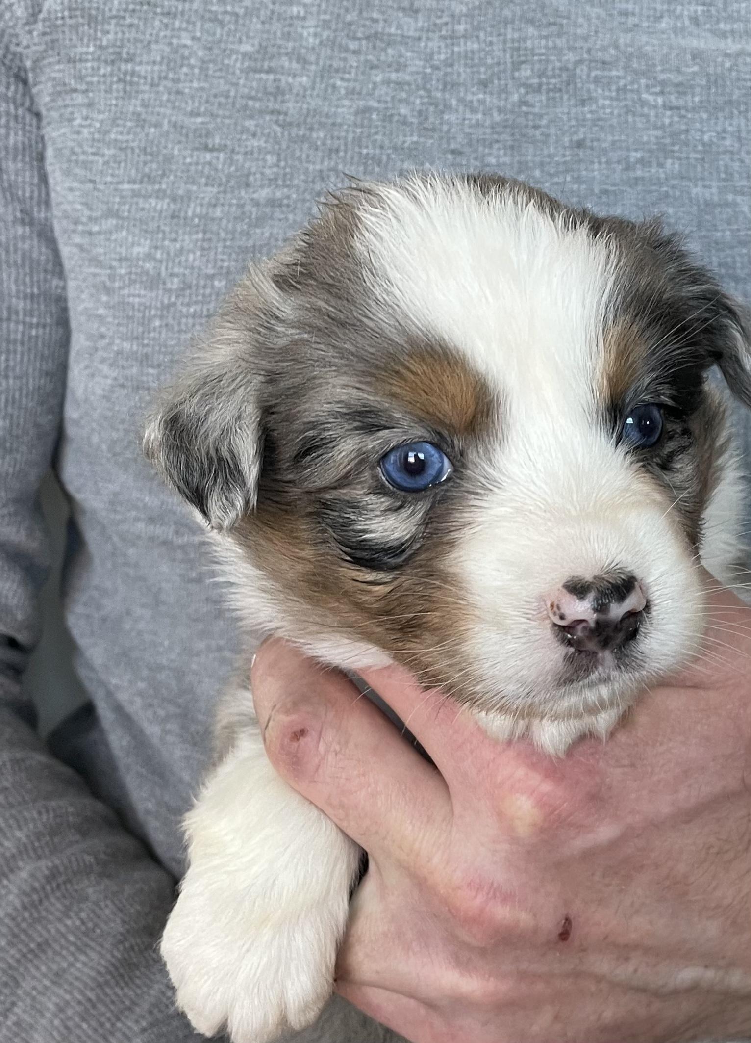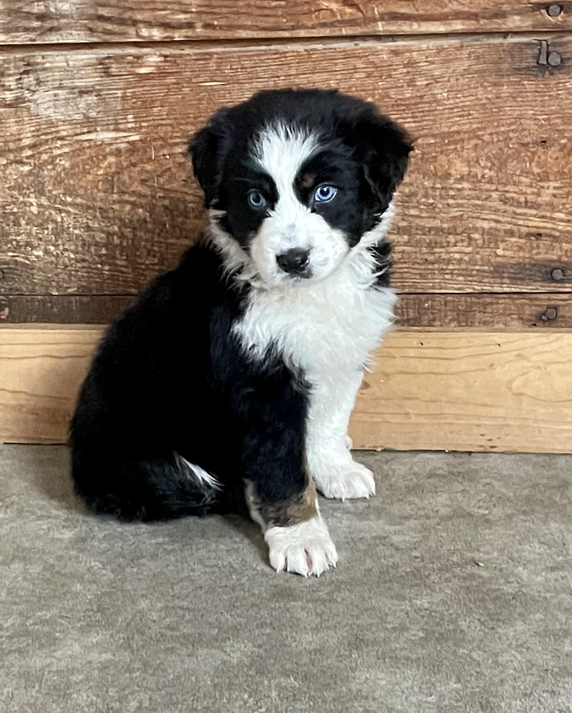 Our puppies include black, red merle, blue merle, and red. Colors will vary depending on the parent dogs.