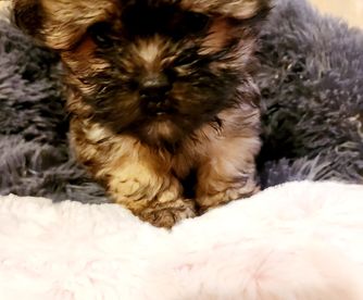 Baby Bella is a female Mi-Ki. Carefully selected as a great representative of her breed, Gayla decided to make her part of their program. Gayla has passed Good Dog’s screening process, which involved a review of their breeding practices, environment, and the mental and physical health of their dogs.
