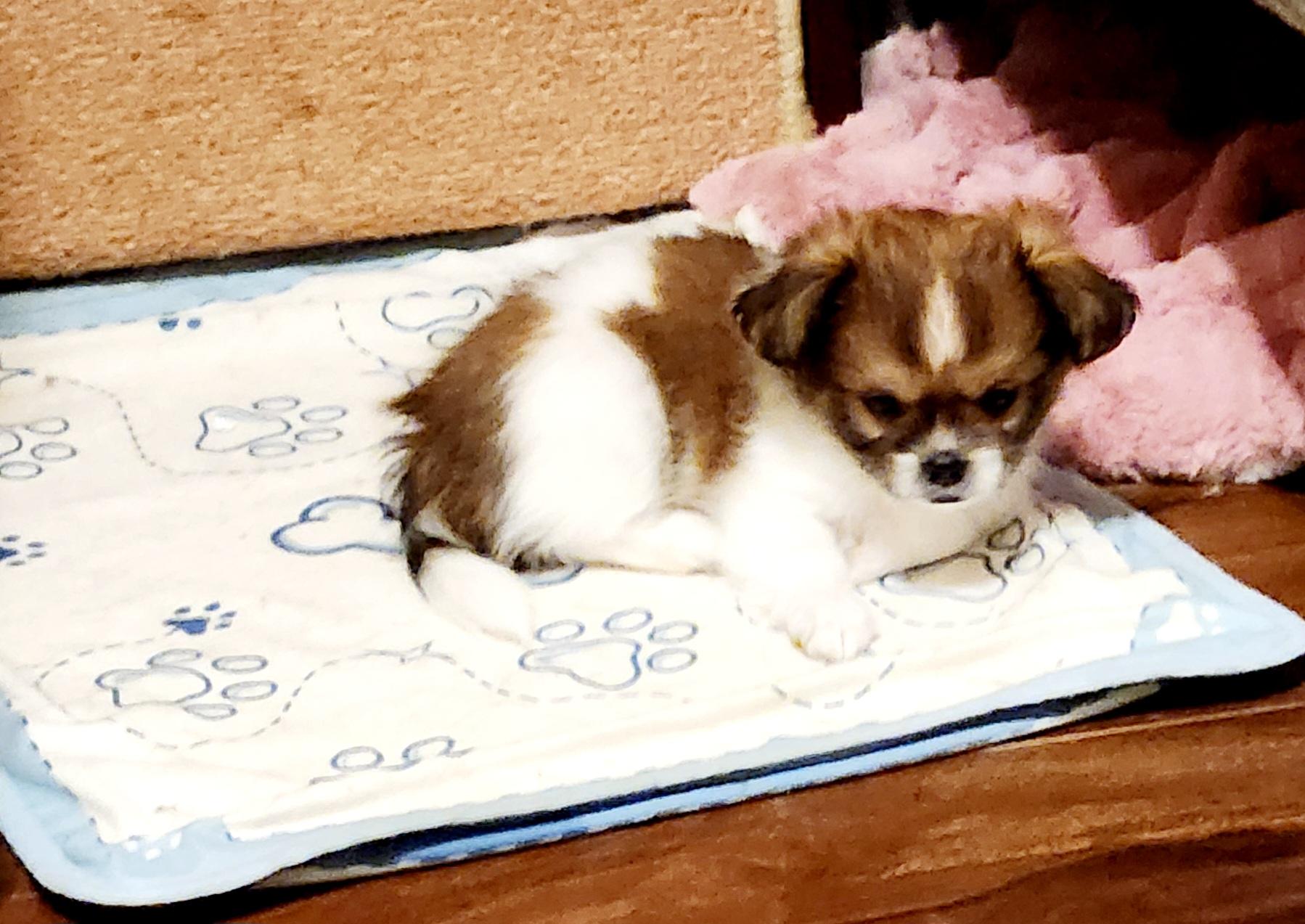 Chiffon is a female Mi-Ki. Carefully selected as a great representative of her breed, Gayla decided to make her part of their program. Gayla has passed Good Dog’s screening process, which involved a review of their breeding practices, environment, and the mental and physical health of their dogs.