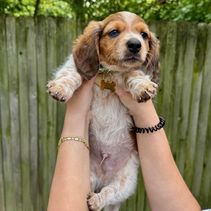 Michelle was amazing to work with! She was so responsive and shared so many pictures of our puppy in the weeks leading up to us bringing him home. She truly cares about dachshunds and loves the breed so much, she was a dream! I couldn’t recommend Michelle enough, our little Gus is absolutely perfect