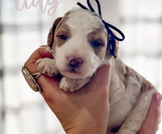 Lottie is a female Goldendoodle. Carefully selected as a great representative of her breed, Natalie decided to make her part of their program. Natalie has passed Good Dog’s screening process, which involved a review of their breeding practices, environment, and the mental and physical health of their dogs.