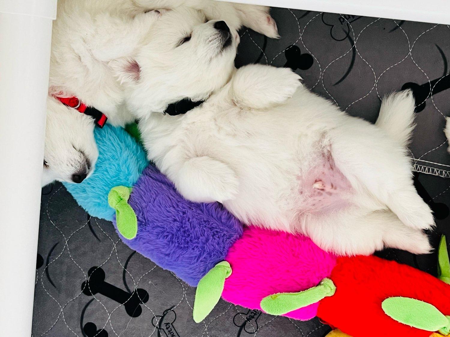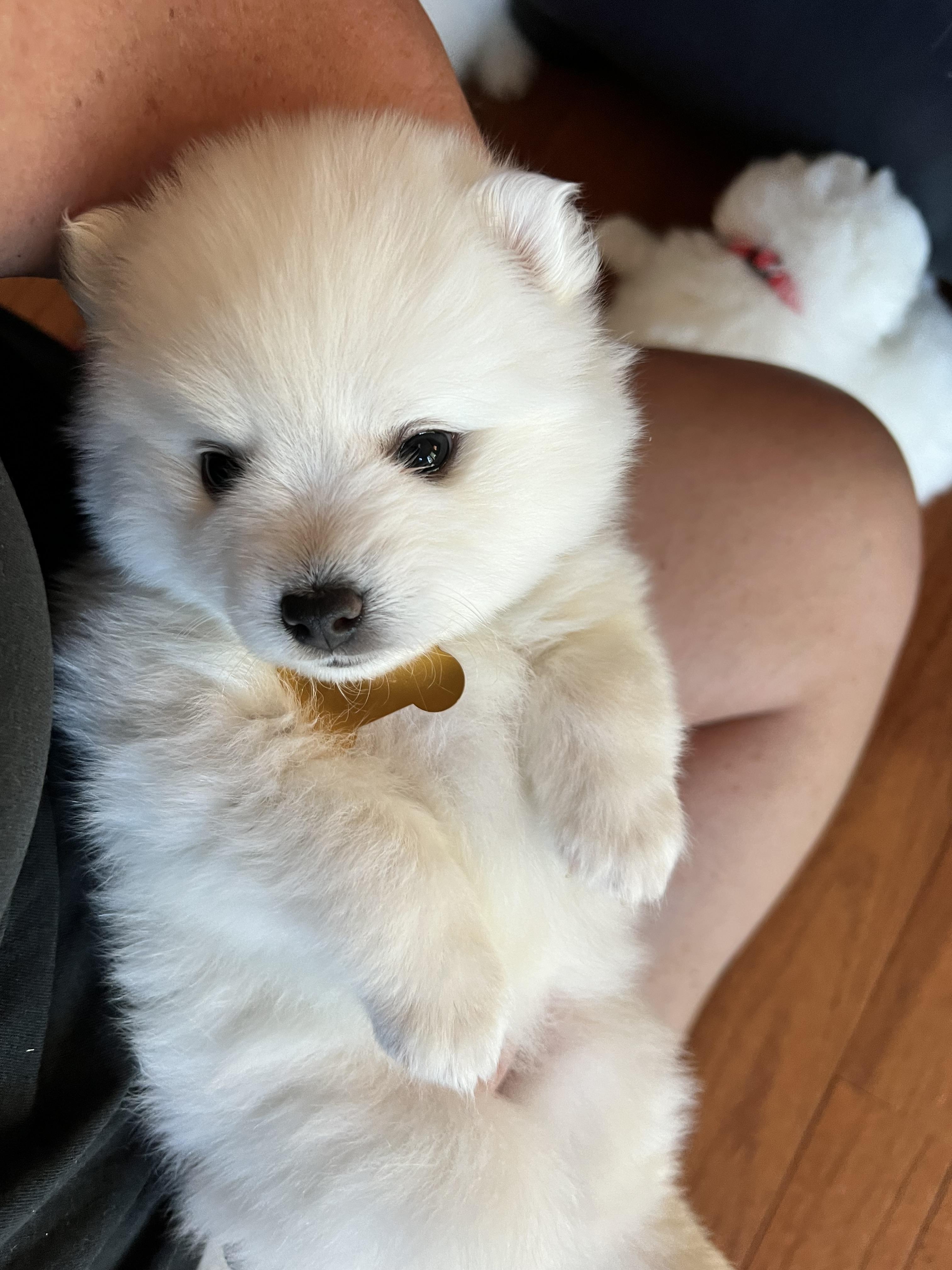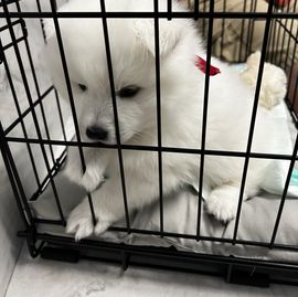 We consider ourselves very lucky 🍀 to have found Lisa and Michael as breeders. They have been so wonderful to work with. From the beginning, Lisa always got back to me in a timely manner and answered all my questions. She informed me quickly once the litter was born, even though she had her hands full with little ones, and kept me updated throughout! I loved ❤️ getting pictures and videos, as he changed so much during those first few weeks. She was extremely helpful in recommending lots of useful products too. But most importantly, they did a fabulous job raising Koda! He is so well adjusted and friendly!! 😊 They did a great job with the introduction to potty training as well. He totally understood the concept of going potty outside from the moment we drove him home and he goes as soon as we bring him out because of this! We were also fortunate to be able to pick him up at their house, meet Mika and Kenji (and Yumi too!) and see the wonderful set up that they use to raise their puppies. And what a set up they have!! It’s no wonder the pups are so well adjusted because they are raised right in the middle of their own home and have so many items that teach the puppies all sorts of varied and valuable experiences. Not only were we impressed but so was my vet when we showed him their unique play-space! Their introduction to the crate has also been beneficial as Koda has no problem being put in his crate at night and sleeps very well during the night right from the day we brought him home! We couldn’t be happier with Koda and highly recommend Mika Japanese Spitz!!!