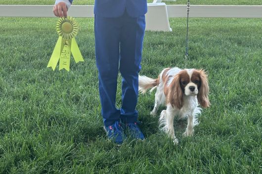 Ash is loves everyone instantly. She has a sweet whimsical personality. She is the type of dog that could have some thing sitting just outside of her crate and never try to go for it or destroy anything. She has been just a joy to raise and own. She likes fetching and loves to work for treats. She is a small cavalier at just 12-13 lbs. She works on films a few times a year.