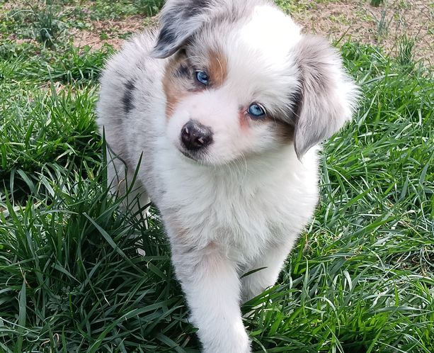 Our Miniature Australian Shepherd puppies include blue merle, black tri, red tri, and red merle. Toy Australian Shepherd puppies include black tri, blue merle, red merle, and red tri. Colors will vary depending on the parent dogs.