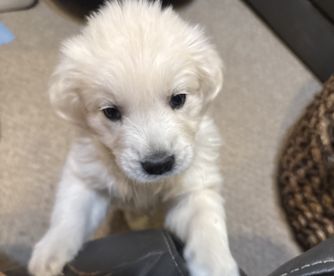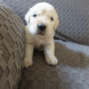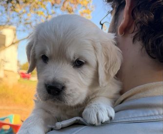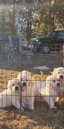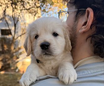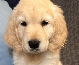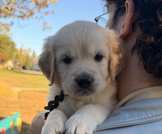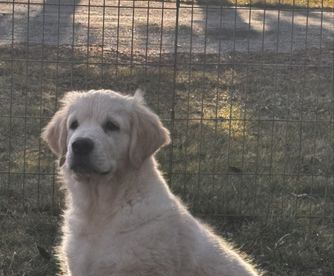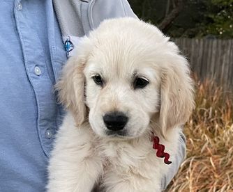 Our Belgian Sheepdog puppies are black. Golden Retriever puppies are light golden. Colors will vary depending on the parent dogs.