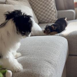 Michael and his wife were extremely knowledgeable with Yorkie’s and their care, and truly made the adoption process a breeze! Our new fur baby Desmond (Des) is so well behaved, including potty trained, and had been exposed to numerous stimulations to ensure his arrival with us would be as easy as possible! He sleeps through the night, knows how to get our attention for going potty, and is a very social and loving little man! We couldn’t be happier with how well he is behaving with our other furbaby Daisy. Thank you both so much for everything you’ve done!