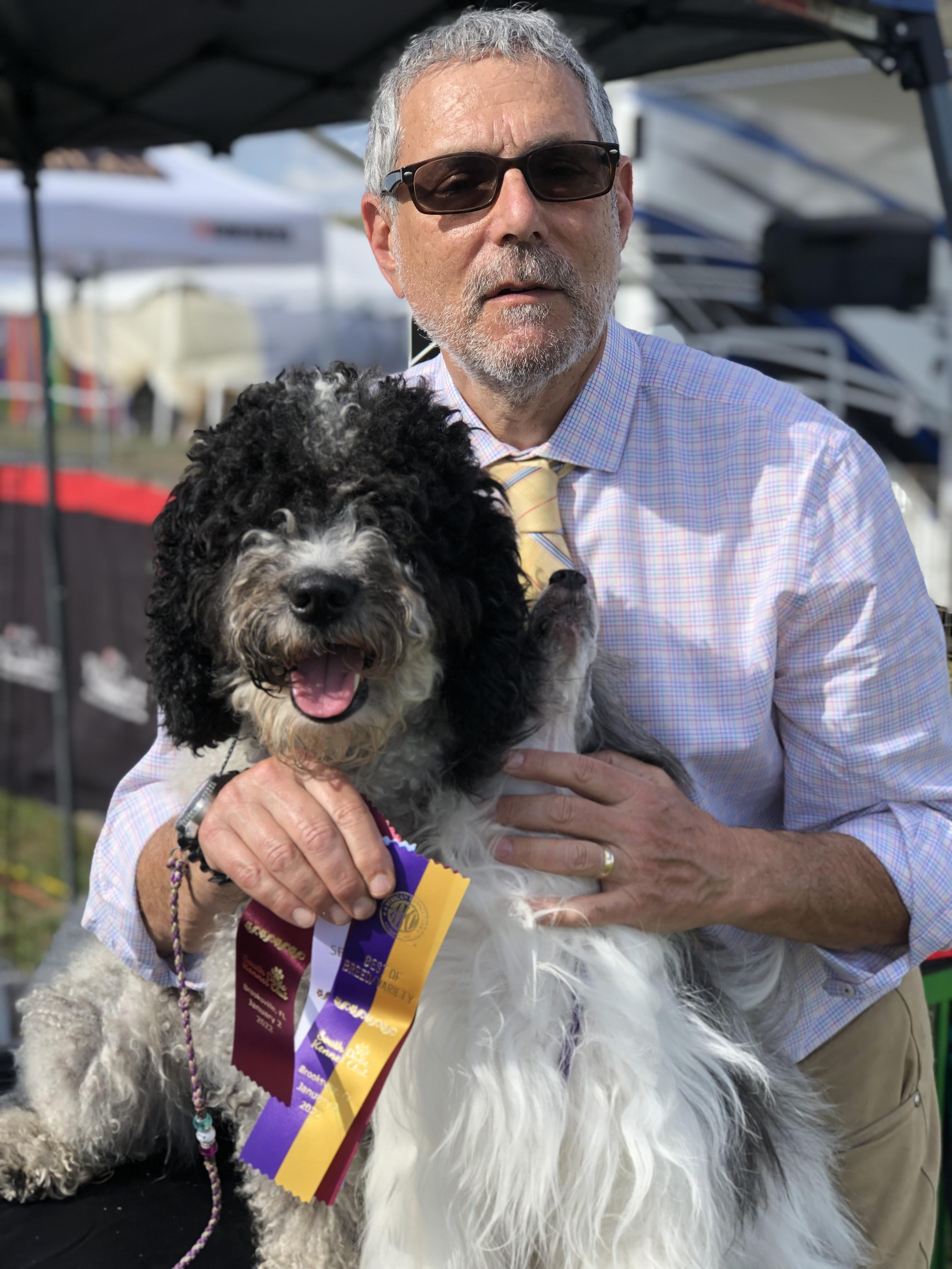 Betsy is a female Spanish Water Dog over 9 years old. Carefully selected as a great representative of her breed, David decided to make her part of their program. David has passed Good Dog’s screening process, which involved a review of their breeding practices, environment, and the mental and physical health of their dogs.