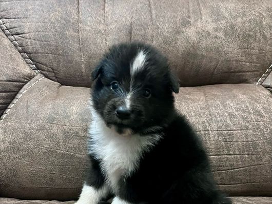 Our puppies include blue merle and white, sable and white, and black white and tan. Colors will vary depending on the parent dogs.
