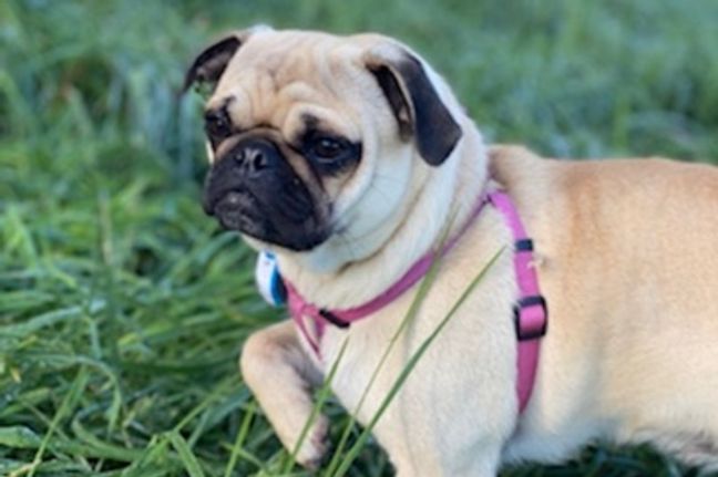 Willow is a female Pug almost 5 years old. Carefully selected as a great representative of her breed, Dinah decided to make her part of their program. Dinah has passed Good Dog’s screening process, which involved a review of their breeding practices, environment, and the mental and physical health of their dogs.