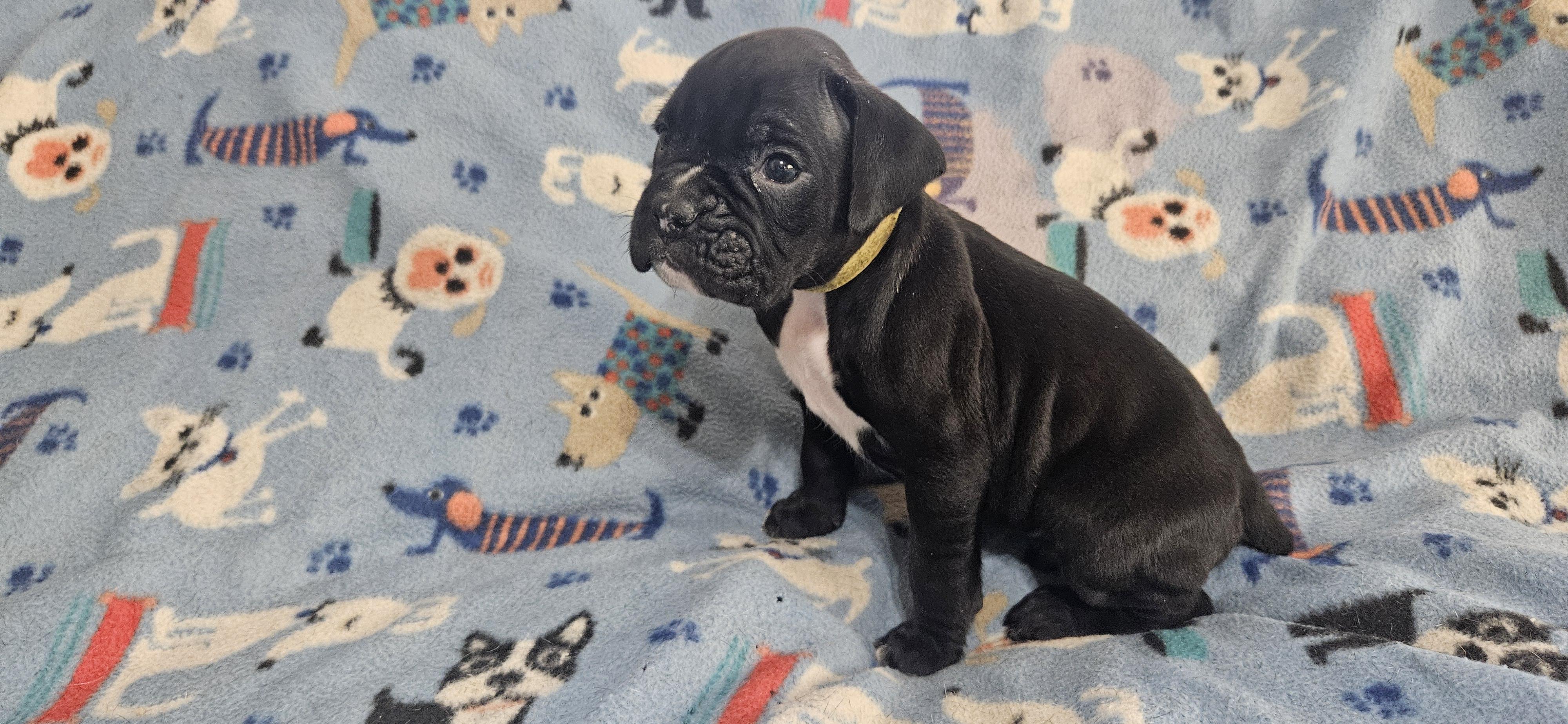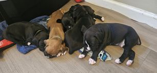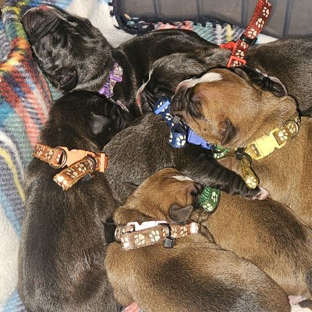 Our puppies include fawn and brindle. Colors will vary depending on the parent dogs.