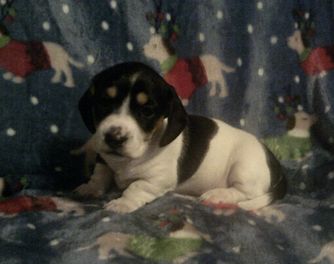 Holly is a very sweet girl who is a first time mom! She adores her puppies but is very good with people coming to the house to see them.