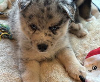 Our puppies include black and white and merle. Colors will vary depending on the parent dogs.