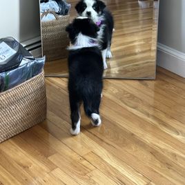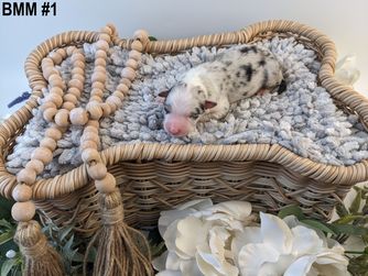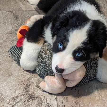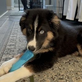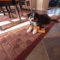 Rosie! is amazing! She was born Oct 25th and we picked her up in December. She has yet to meet a person or animal she doesn’t love. Incredibly smart and wants to learn. She is the absolute rockstar in our town. The last photo is the most recent. She has a very nice brown color coming in on her legs. Milkyway was great and easy to work with. They even gave us a very nice adoption basket. They produce absolutely amazing Aussies. Genetically I think this dog is perfect hahaha.