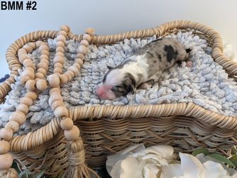 Our puppies include black, red merle, blue merle, and red. Colors will vary depending on the parent dogs.
