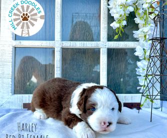 I'm Ashlie T., the breeder behind Mill Creek Doodles located in Plantersville, TX. We strive to give each puppy the best start possible by utilizing a puppy curriculum to ensure proper growth and socialization! That includes everything from choosing healthy parents with good temperaments, to proper socialization and daily care, to placing them in loving homes with great families.