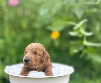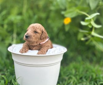 Our puppies include apricot and red. Colors will vary depending on the parent dogs.