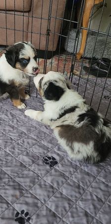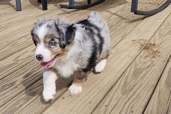 Our Miniature American Shepherd puppies include red tri-color, black tri, red merle, and blue merle. Miniature Australian Shepherd puppies include blue merle, black tri, red tri, and red merle. Toy Australian Shepherd puppies include black tri, blue merle, red merle, and red tri. Colors will vary depending on the parent dogs.