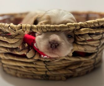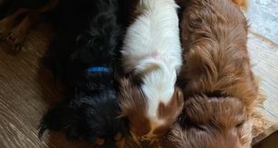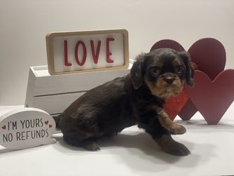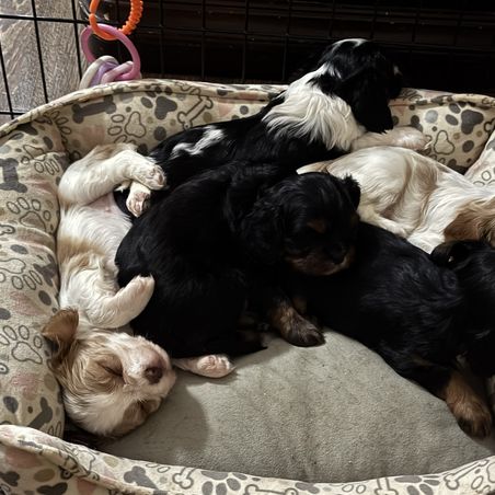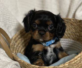 Our puppies include blenheim, ruby, tri-color, black and tan, and chocolate. Colors will vary depending on the parent dogs.