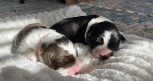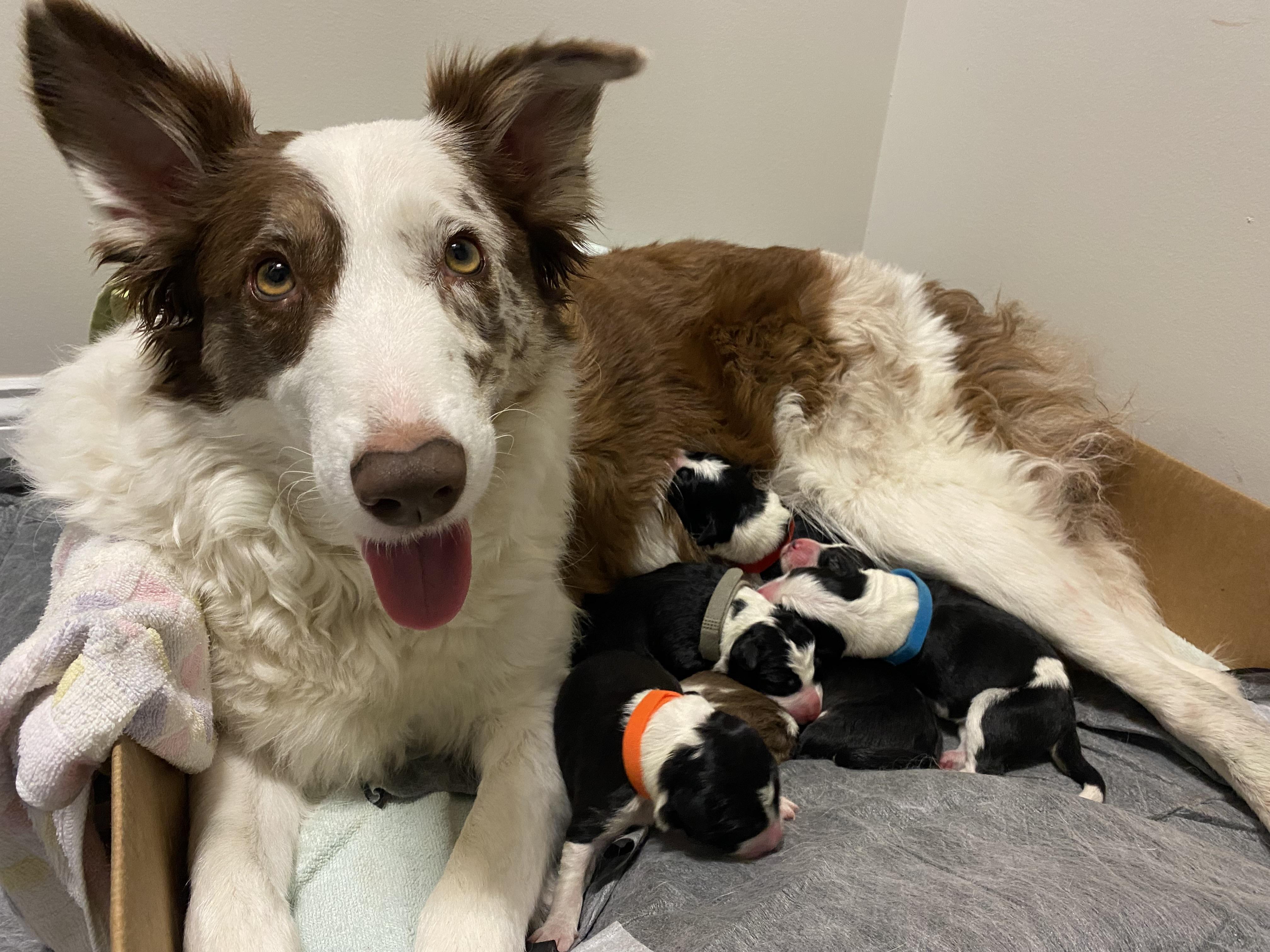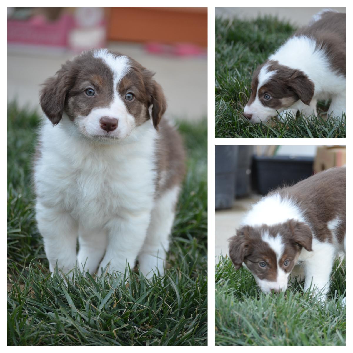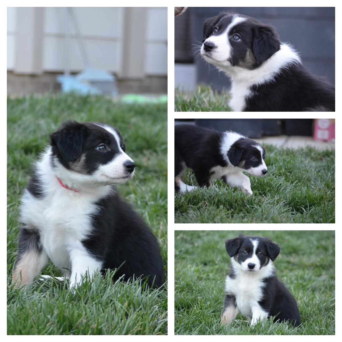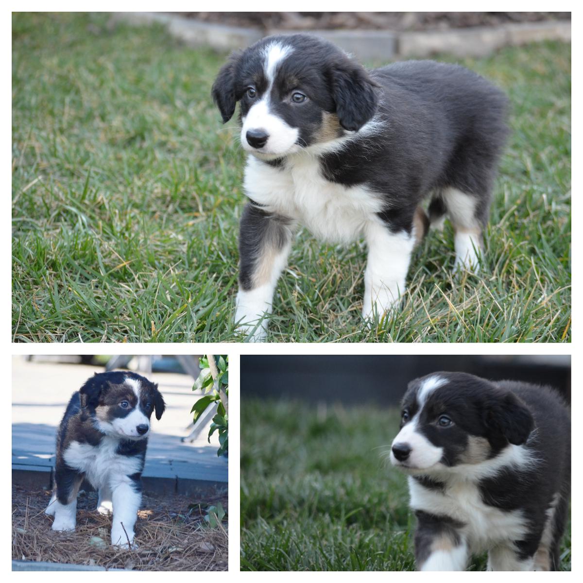 Our puppies include tri-color, black and white, and red merle. Colors will vary depending on the parent dogs.