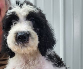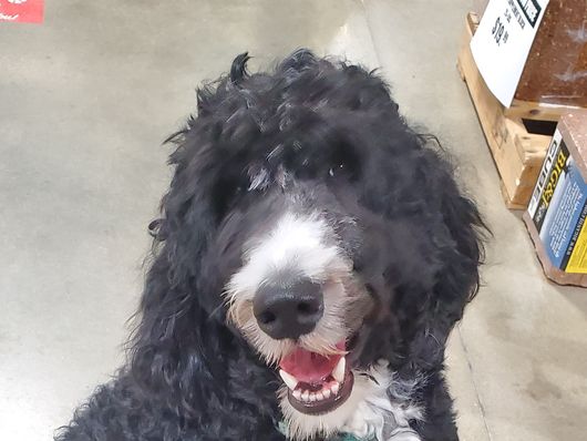Titus is a male Sheepadoodle. Carefully selected as a great representative of his breed, Emily decided to make him part of their program. Emily has passed Good Dog’s screening process, which involved a review of their breeding practices, environment, and the mental and physical health of their dogs.